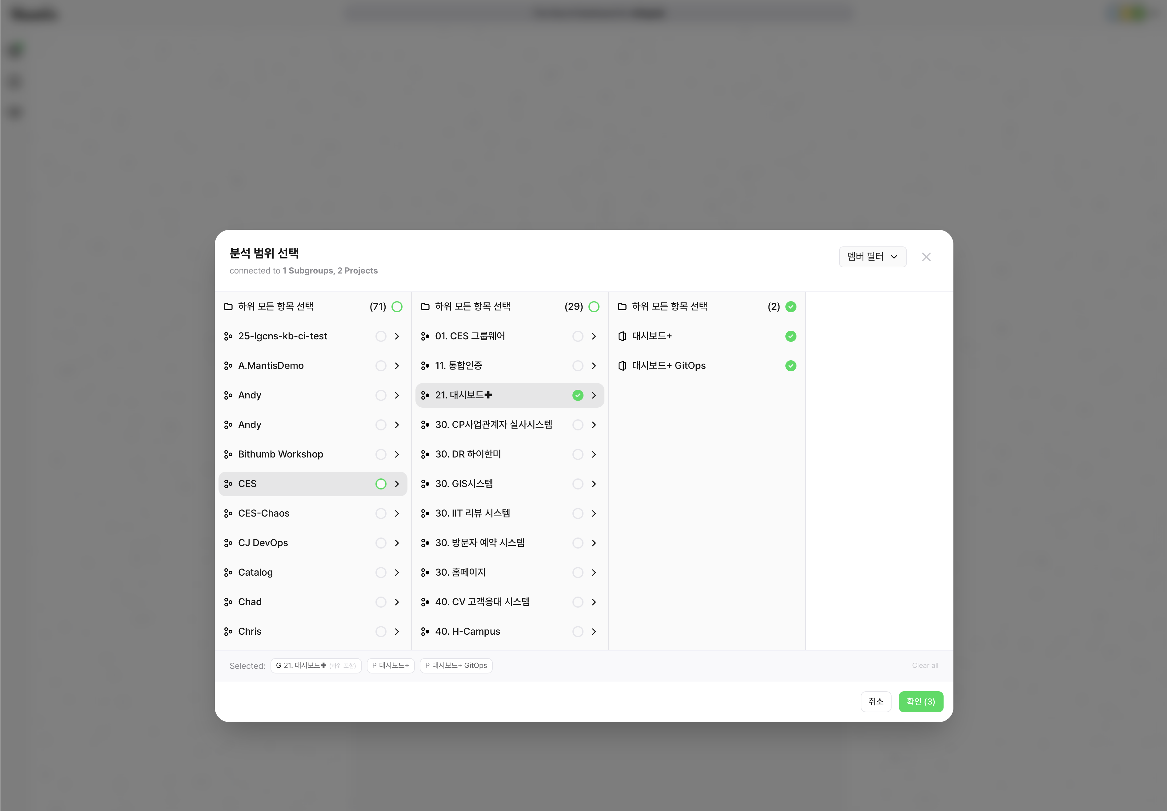 | 특정 그룹 선택 | 특정 GitLab 그룹 선택 (하위 그룹 포함 가능) |
